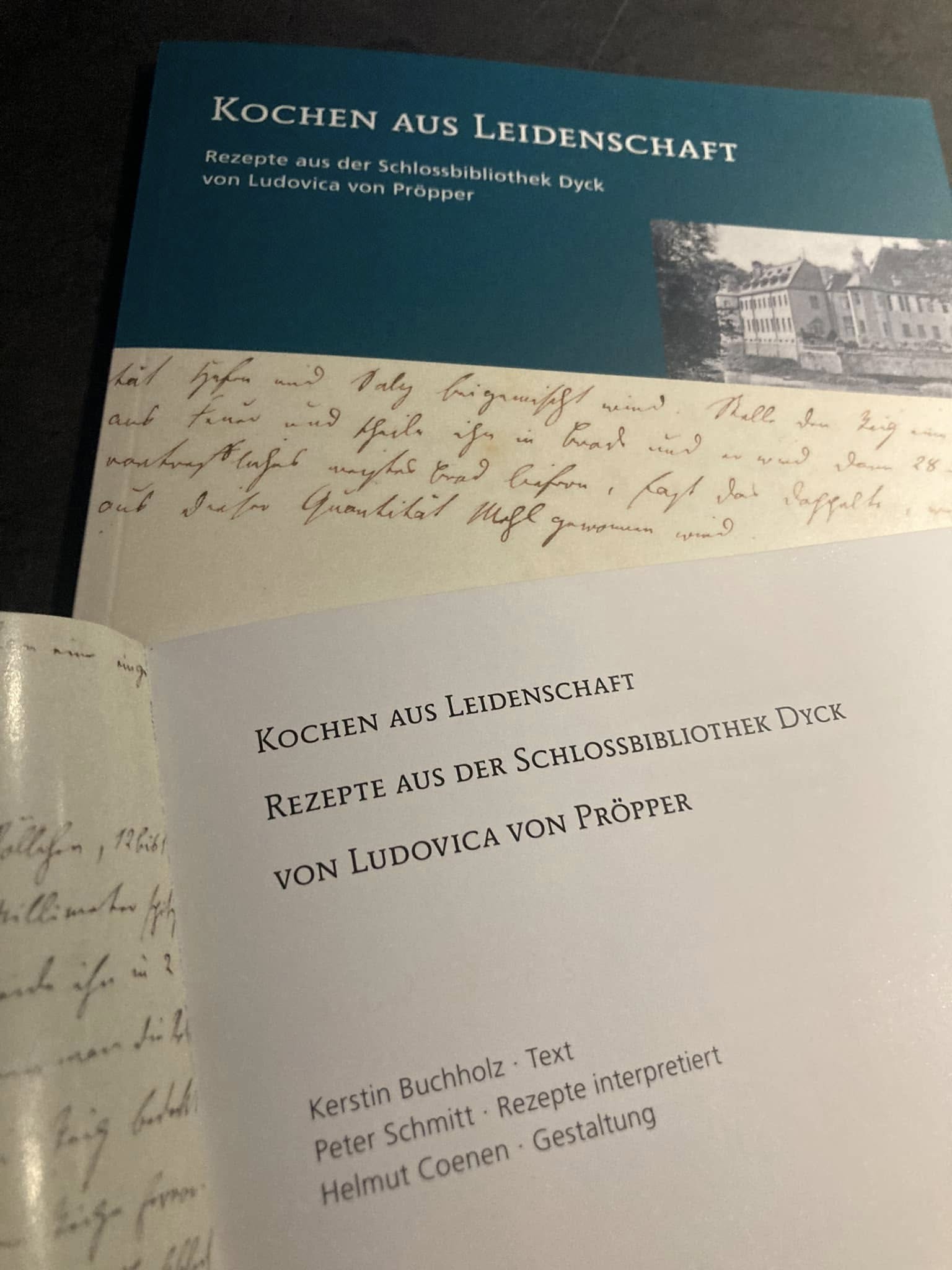 “Kochen aus Leidenschaft – Rezepte aus der Schlossbibliothek Dyck von Ludovica von Pröpper”, Hrsg. Helmut Coenen, Druck Hansa Druckerei 2025